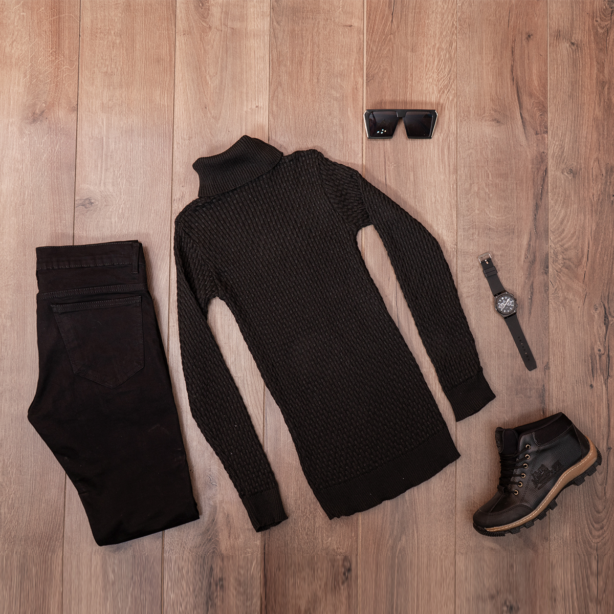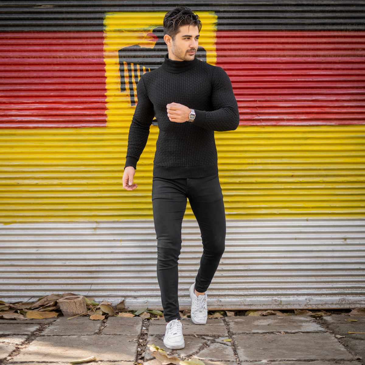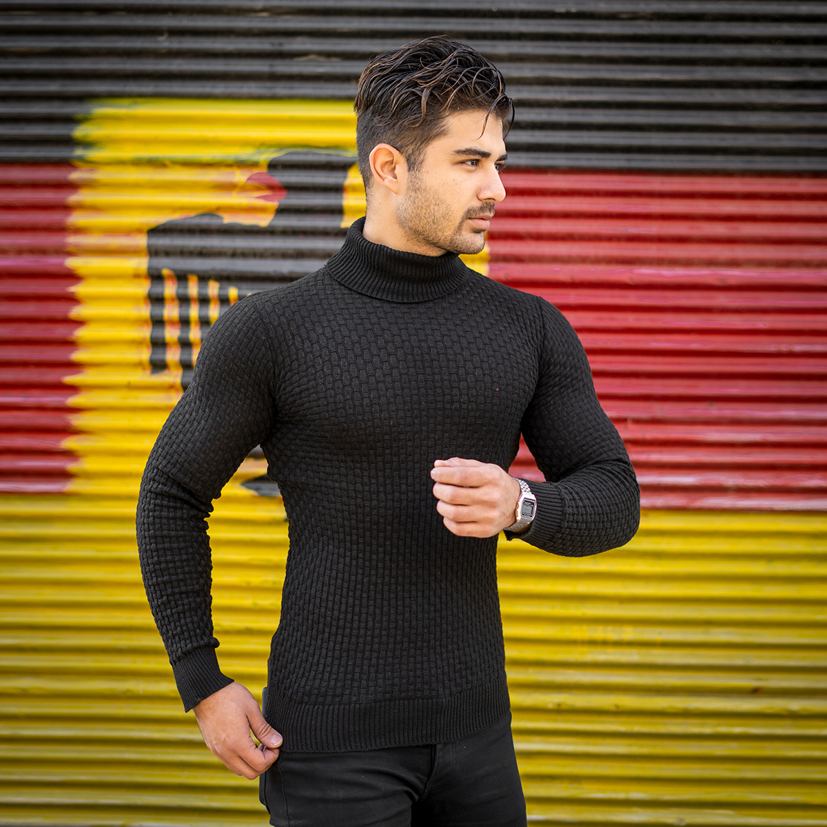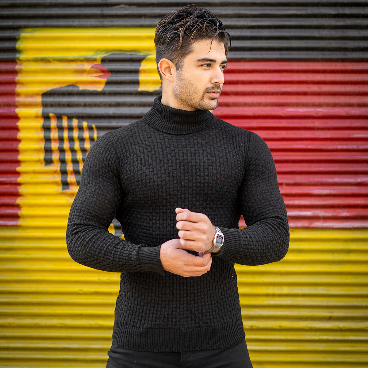 پلیور یقه اسکی مردانه مشکی مدل Oktav