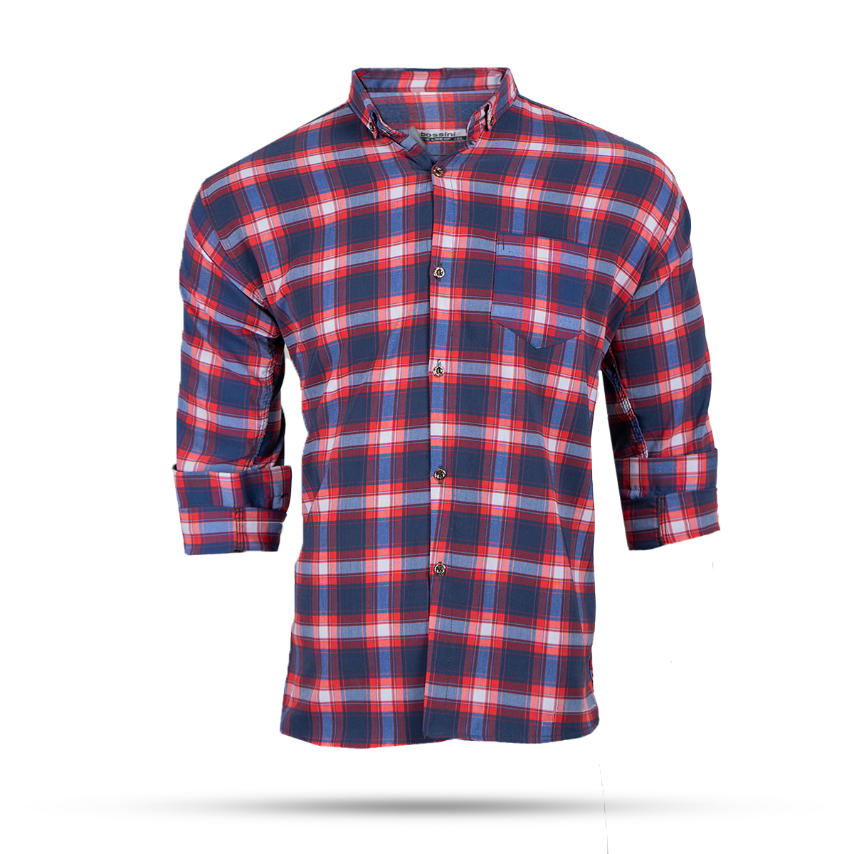 پیراهن مردانه چهارخونه سرمه ای قرمز مدل Tivon